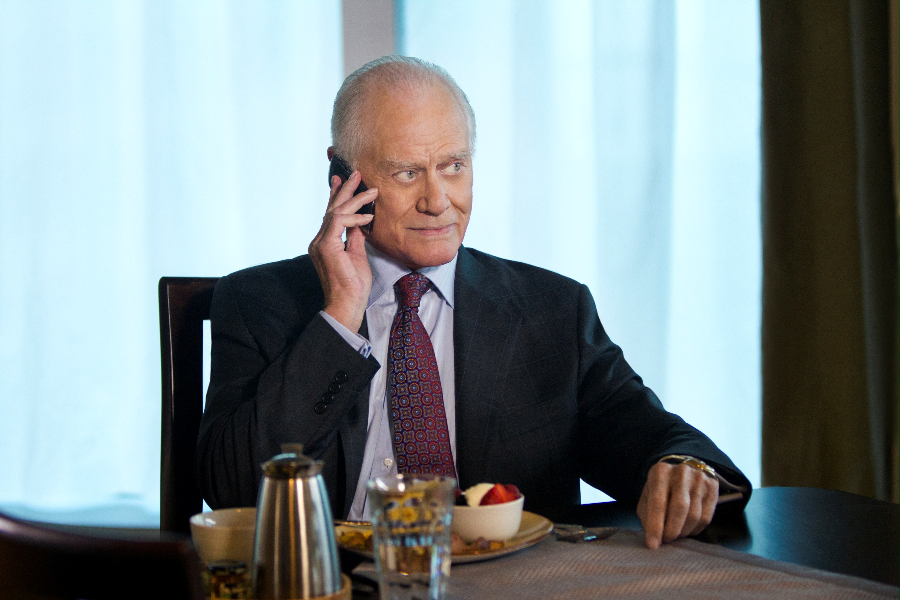 J.R. (Larry Hagman) does a little business via smartphone in this publicity shot from “The Enemy of My Enemy,” the sixth episode of TNT’s “Dallas.” Photo credit: Zade Rosenthal/TNT.