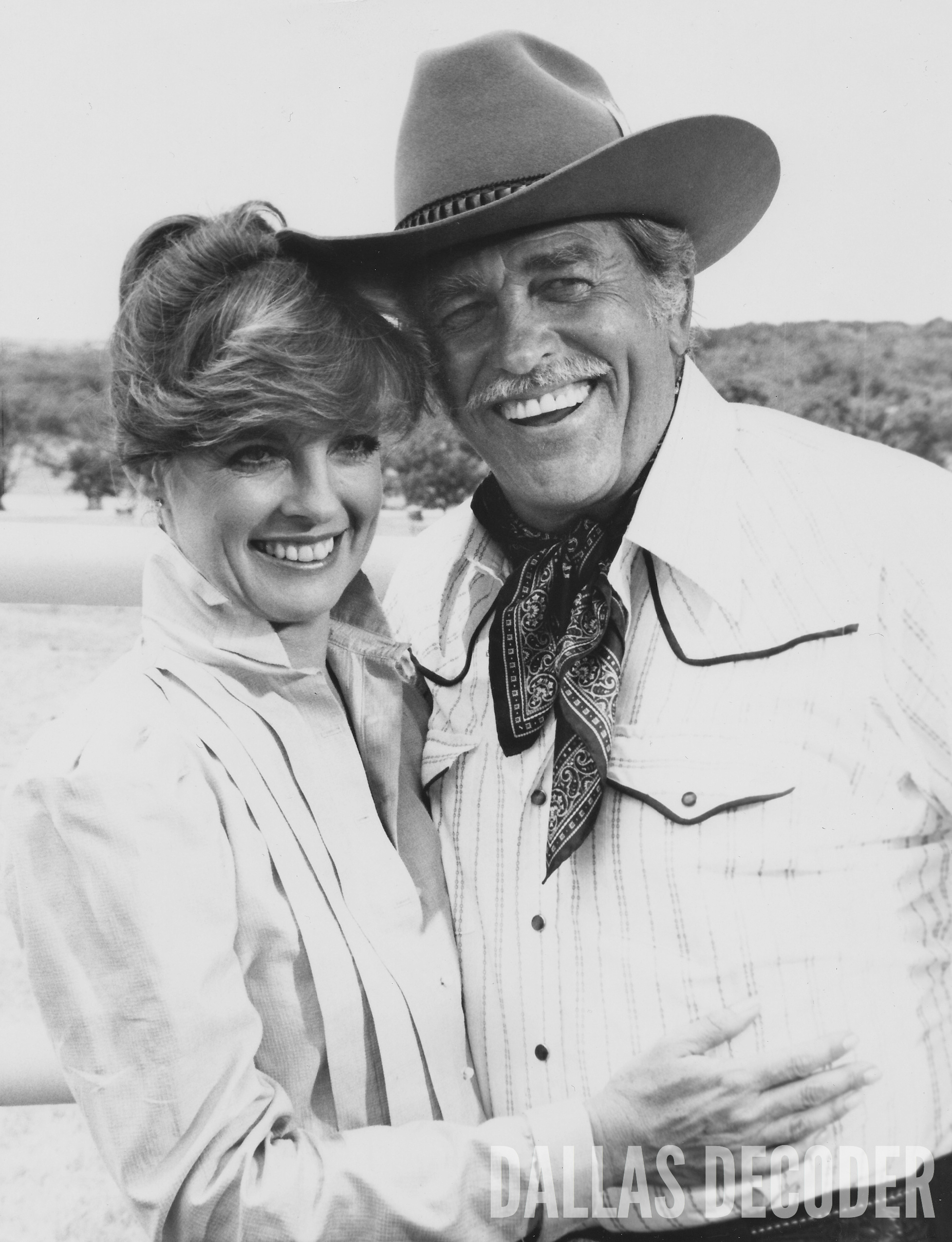 Sue Ellen and Clayton (Linda Gray, Howard Keel) are seen in this 1981 publicity shot from “Five Dollars a Barrel,” a fifth-season “Dallas” episode.