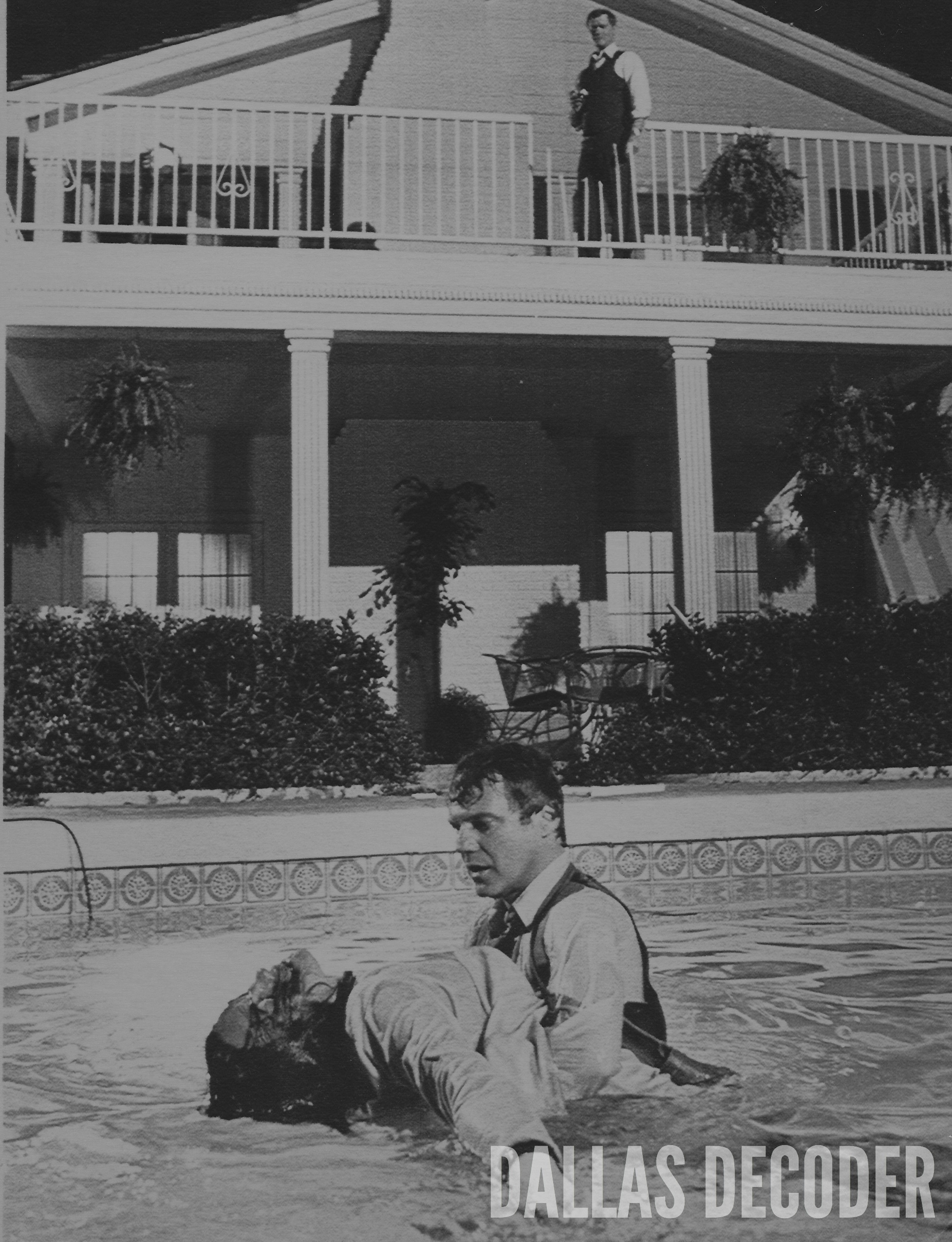 Flash forward two seasons: In “Ewing-Gate,” Kristin Shepard, another of J.R.’s ex-mistresses/ex-secretaries, threatens to spill the beans about their secret love child if he doesn’t pay her more hush money. When J.R. refuses to give in to Kristin’s scheme, she shows up at Southfork and, after a confrontation with J.R., falls from the balcony and drowns in the swimming pool.
