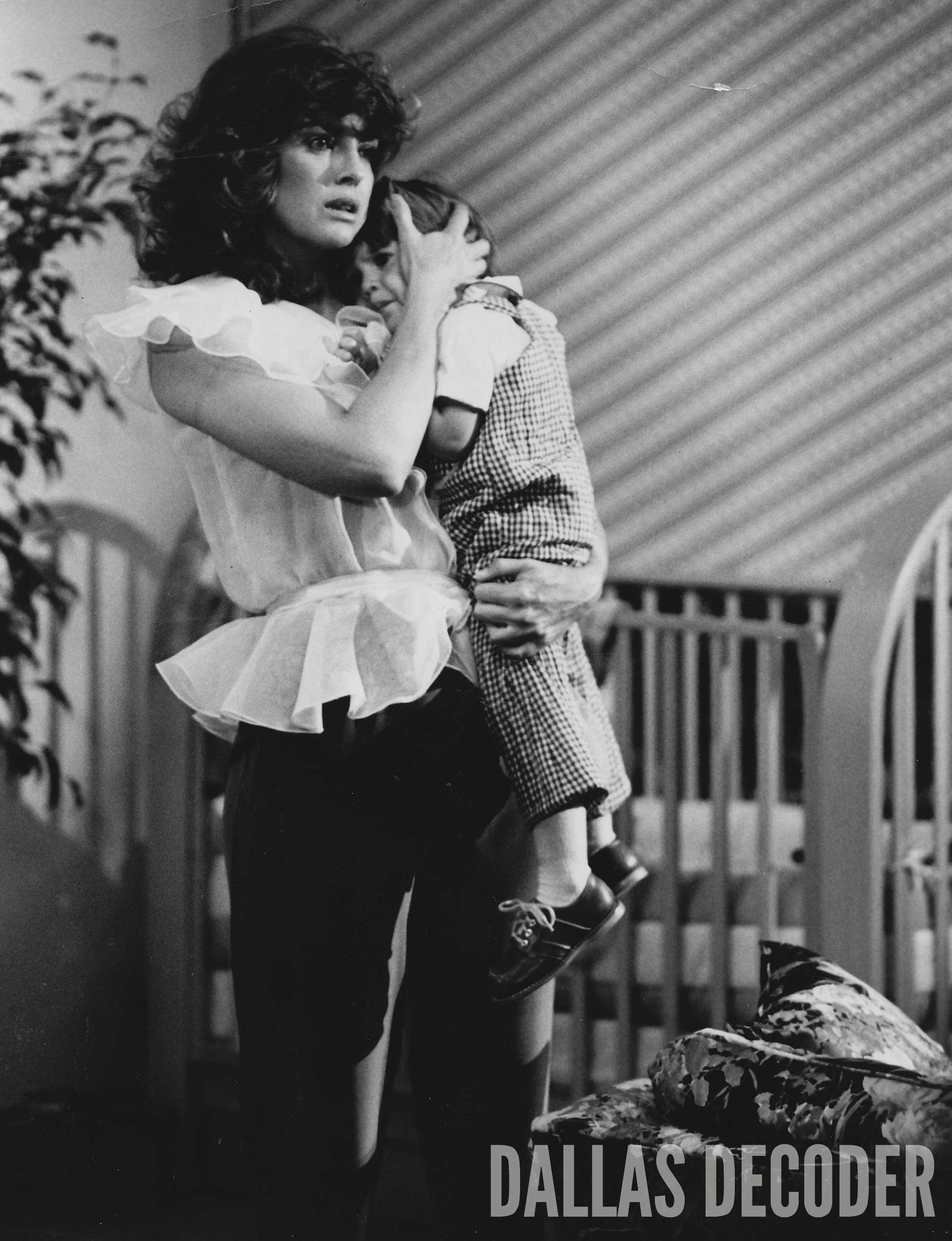 3. John Ross (1981). When Sue Ellen and John Ross went to live at the Southern Cross, J.R. was determined to get his boy back. He saw an opportunity when Sue Ellen took the child with her to Kristin’s funeral in New Mexico. Mother and son were gliding through a Love Field terminal when two of J.R.’s thugs approached. While one man distracted Sue Ellen, the other snatched the child. Suddenly, Dusty Farlow and a trio of Southern Cross cowboys swarmed the dude holding John Ross. “Give us the boy,” Dusty demanded — and of course the guy did. This might have been “Dallas’s” briefest abduction, but wasn’t it exciting!